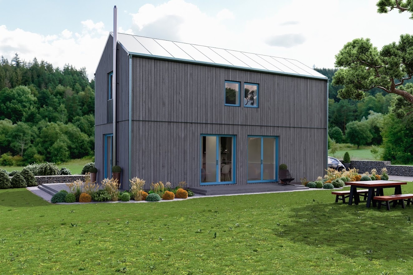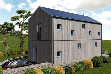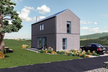 Rodinný dům Natura Timber B31 je moderní úsporný rodinný dům, navržený pro potřeby 2 – 4 členné rodiny, který lze realizovat na rovině i sklonitém pozemku.